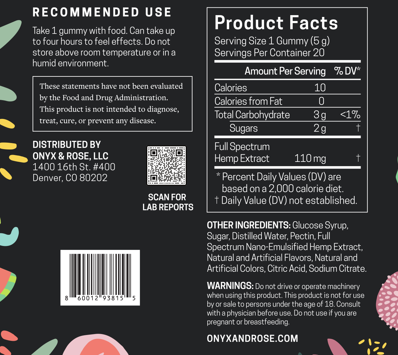 - 02We recommend starting with either half a gummy or one gummy for your first experience.